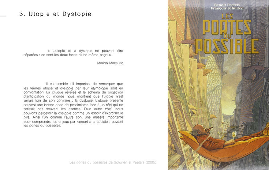 L’intervention du cinéma dans le traitement de la question de l’utopie exprimée dans les films et séries permet d’analyser l’univers des possibles et les possibles restitués en des univers, des tentatives de monde, calquant les principes de réalité ou en les exhaussant. Le cinéma apparaît comme un laboratoire d’expérimentations. Le traitement de l’utopie dans la société par l’image permet différentes appréhensions et réflexions sur la ville, l’urbain. L’apparition de dystopie qui met en nuance un regard critique mais à l’inverse de l’utopie projette un avenir souvent sombre et la perte de conviction dans l’avenir. L’utopie comme la dystopie sont deux reflets d’une seule et même réalité qui tente de se redéfinir à l’écran. Ils servent ainsi de support pour étayer le propos de la question de la ville de demain et du projet urbain dans l’architecture. C’est en ce sens qu’il convient de poser un cadre à cette réflexion esquisse : la ville est comme le précise Yona Friedman “ l’utopie par excellence”. Comprendre comment les explorations ou utopies d’architecture urbaine font projet pour mieux appréhender les problématiques de la ville actuelle, et l’aménagement des villes de demain.