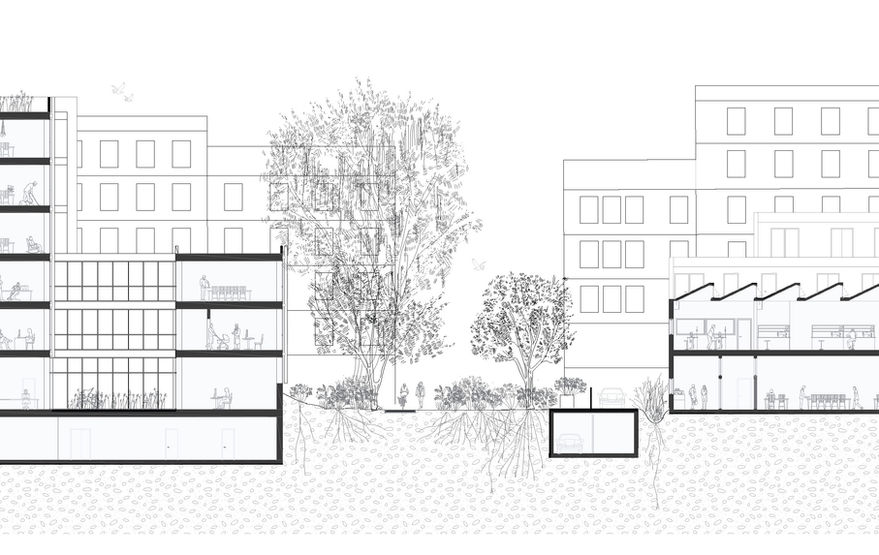 Habiter et travailler ensemble. Ce projet mixte associe logements et ateliers d’artisans maroquiniers sur un même site. Les ateliers occupent les rez-de-chaussée et premiers étages, tandis que des logements les surplombent, créant un environnement où vie et travail cohabitent. Une attention particulière a été portée à la circulation et à l’expérience des usagers, qu’ils soient artisans ou habitants. En intégrant des logements pour seniors au-dessus d’un centre de santé, le projet répond aux besoins spécifiques de ses résidents tout en favorisant les interactions entre les espaces privés et publics. Cette conception propose un équilibre entre fonctionnalité, convivialité et dynamisme urbain.