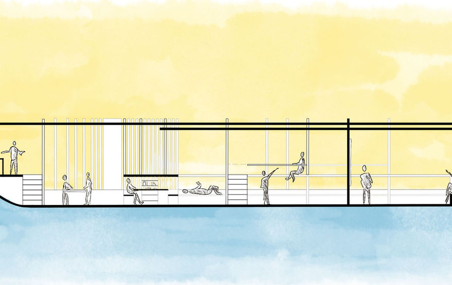 Ce projet propose une extension flottante et navigable pour l’École d’architecture de la Villette. Conçue comme un bateau habitable, elle peut accueillir jusqu’à dix personnes, offrant un espace adapté à un petit groupe d’étudiants. L’architecture repose sur une réflexion autour de la réversibilité des espaces, où chaque fonction peut s’adapter selon les besoins. La transparence, maître-mot du projet, s’exprime à travers un jeu subtil entre opacité et clarté, favorisant une continuité entre l’intérieur et l’extérieur. Cette structure nomade incarne une vision innovante, où mobilité, modularité et lumière se conjuguent au service de l’expérimentation et de la pédagogie.